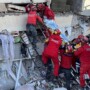 Rescuers carry a woman after she was evacuated from under a collapsed building following an earthquake in Kahramanmaras, Turkey, February 7, 2023. Photo Credit: REUTERS/Suhaib Salem